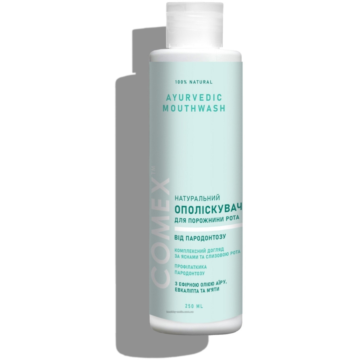 Натуральний засіб для догляду за ротовою порожниною Comex з натуральними індійськими травами - для профілактики пародонтозу та комплексного догляду за яснами й слизовою рота. Ефірні олії лепехи, евкаліпта та м'яти мають антибактеріальні, протизапальні та заспокійливі властивості, запобігають утворенню пародонтозу та карієсу, очищають дихання, підтримують загальну гігієну порожнини рота.