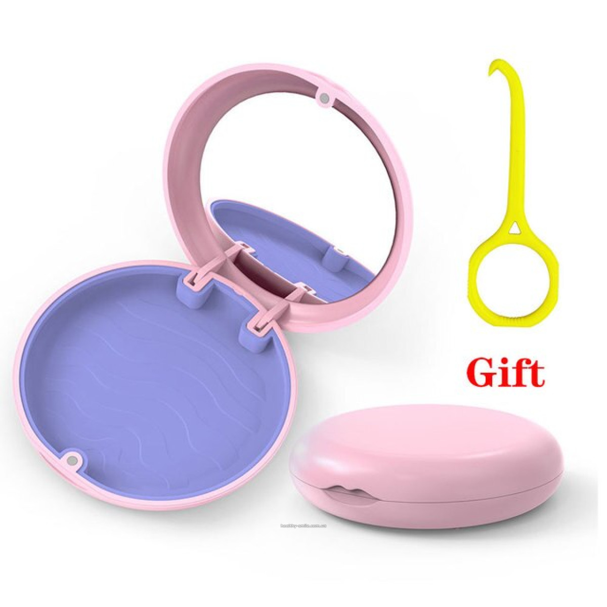 Контейнер для кап, елайнерів, ретейнерів, з дзеркалом, на магнітику, Рожевий