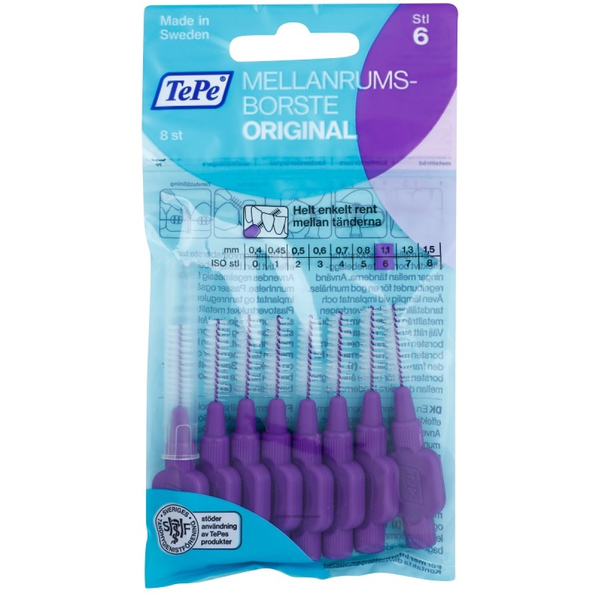 Міжзубні щітки TePe Original Міжзубні щітки TePe Original Діаметр дроту 1,1 мм, відтінок фіолетовий, 8 шт.